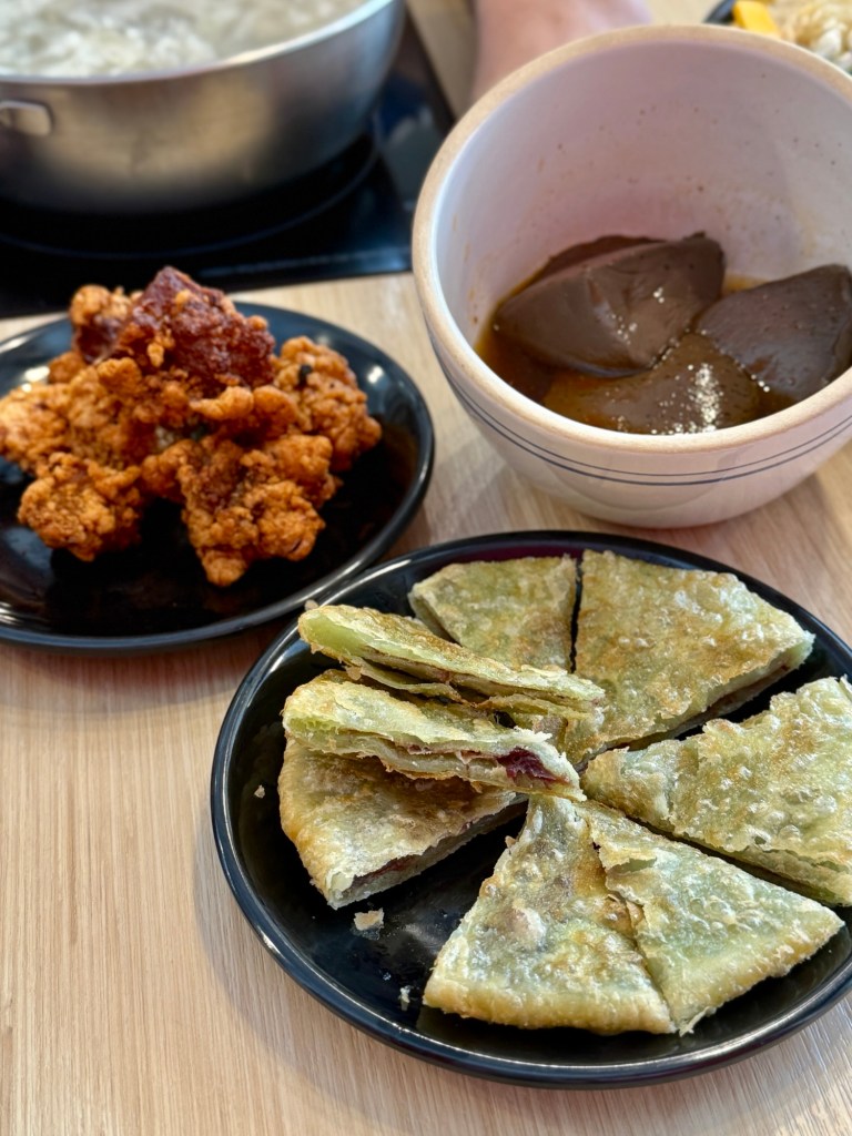 鴨血、酥炸排骨酥、豆沙鍋餅、抹茶紅豆餅、高雄大黑輪